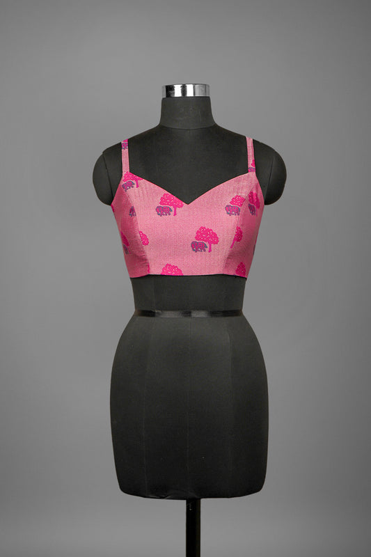 Festive wear pretty fuschia pink single color blended silk brocade body designed elephant blouse ready...