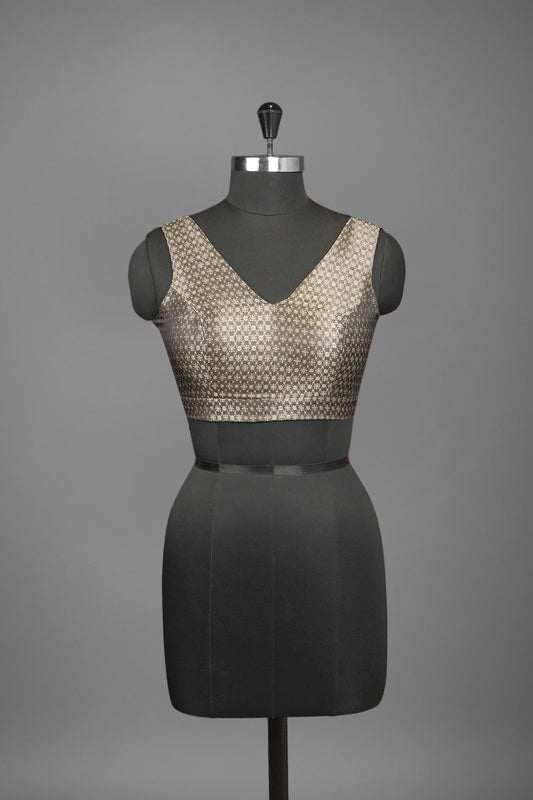 Festive wear pretty light beige single color blended tussar woven body designed blouse ready to...