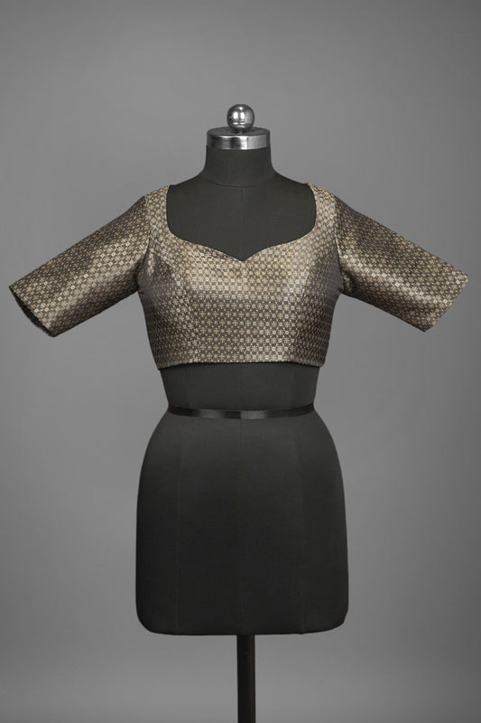 Festive wear pretty black single color blended silk woven body designed blouse ready to wear...
