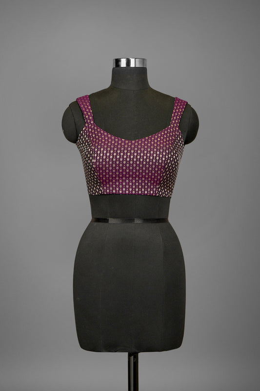 Festive wear pretty dark violet purple single color blended silk woven body designed blouse ready...
