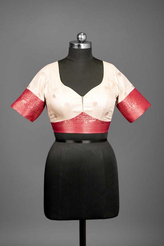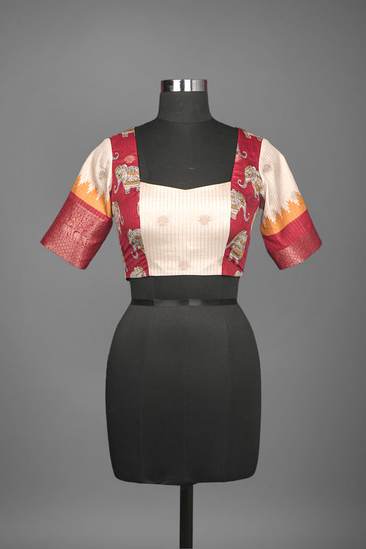 Festive wear pretty light beige single color blended tussar woven body designed elephant blouse ready...