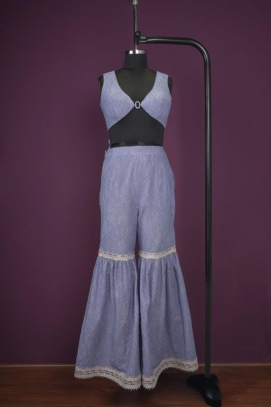 Party wear pretty white single color blended chiffon wrinkled body designed printed Indo-westerns