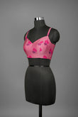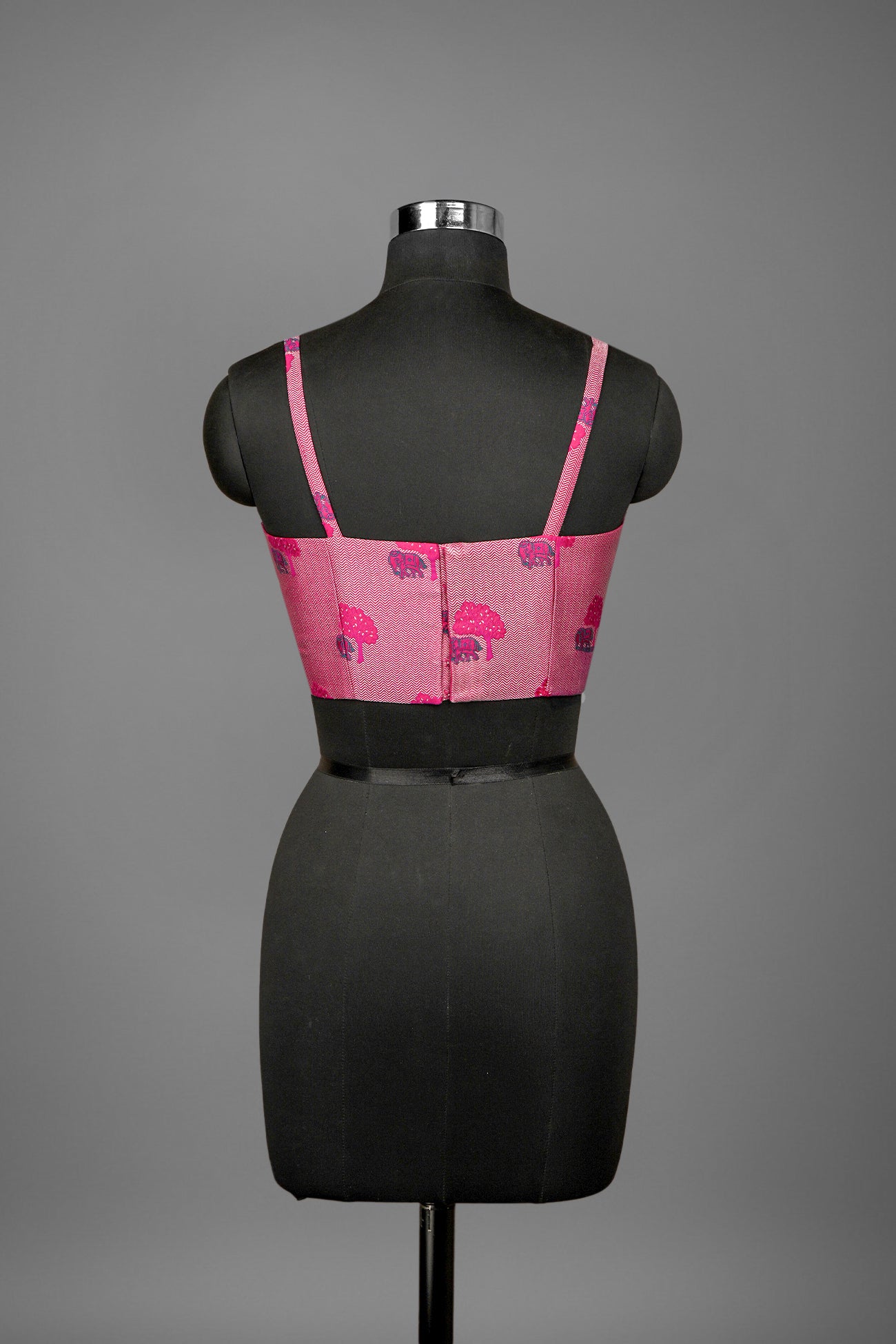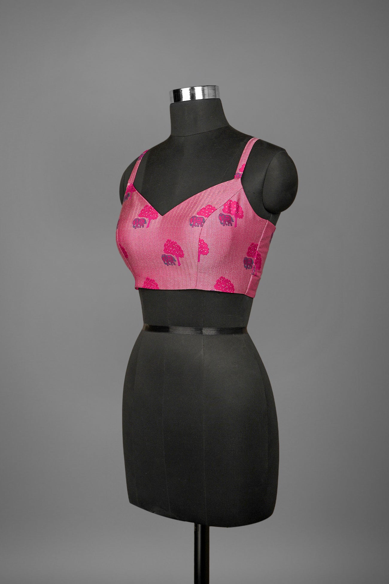 Festive wear pretty fuschia pink single color blended silk brocade body designed elephant blouse ready to wear with half fine zari silver