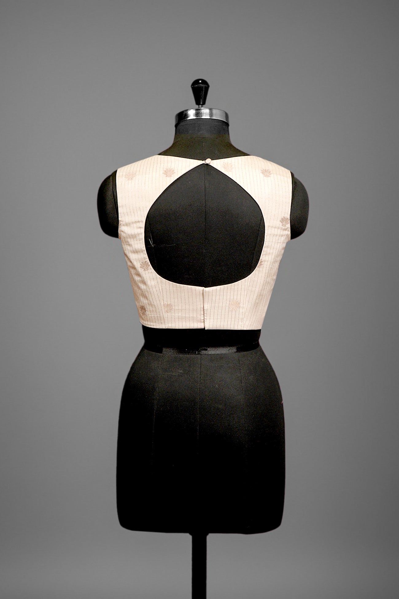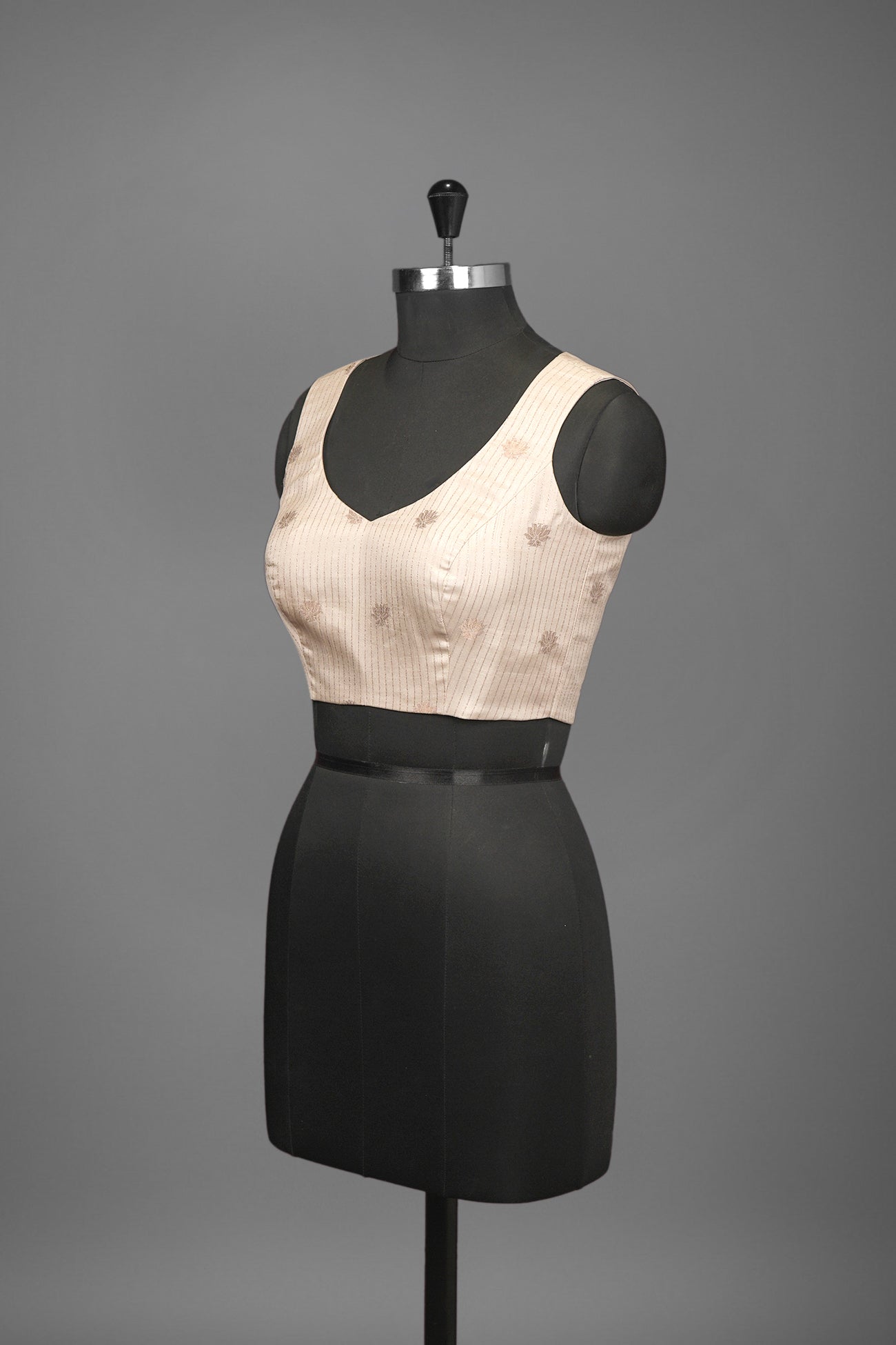 Festive wear pretty light beige single color blended tussar woven body designed blouse ready to wear with half fine zari gold