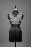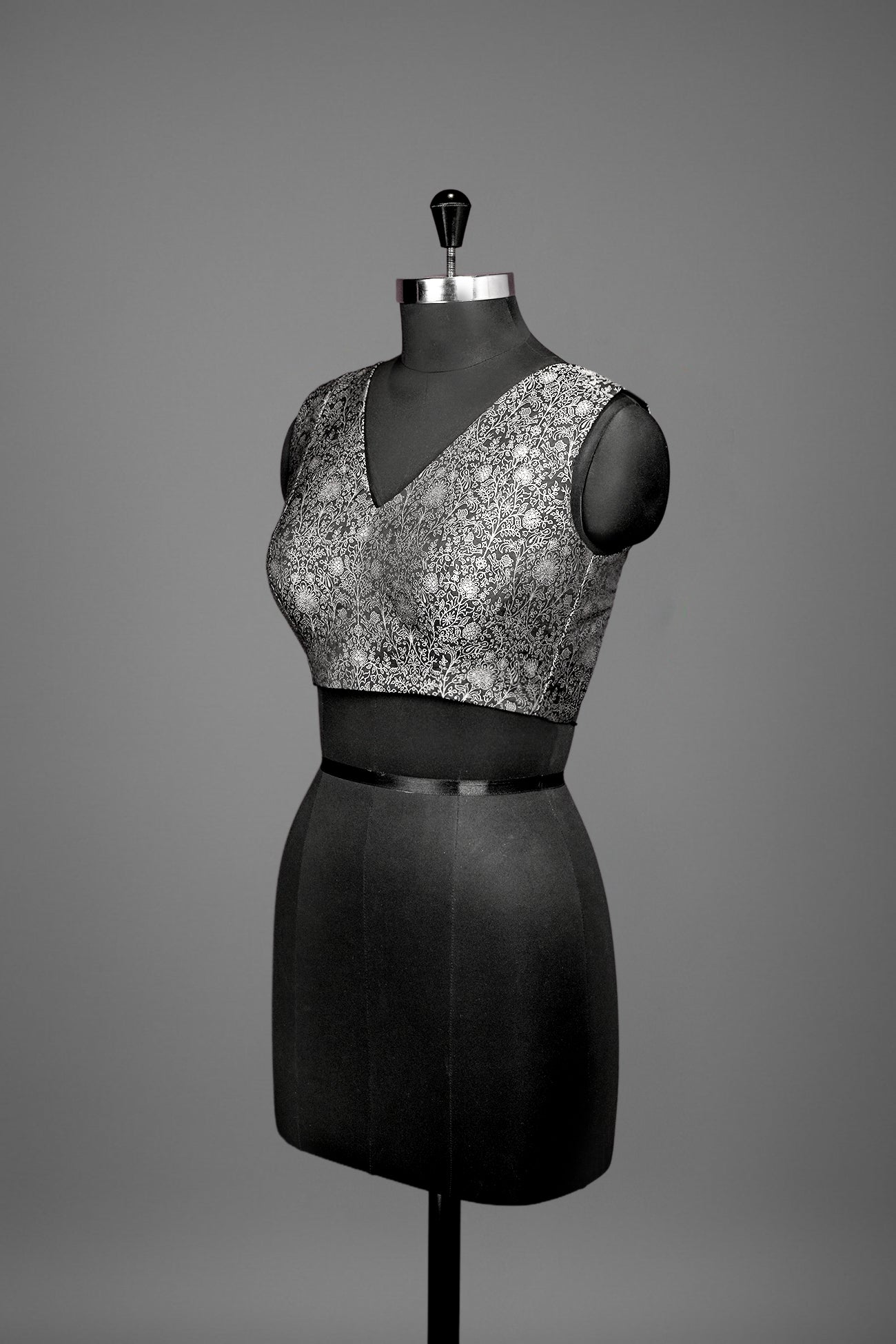 Festive wear pretty black single color blended silk woven body designed blouse ready to wear with half fine zari silver