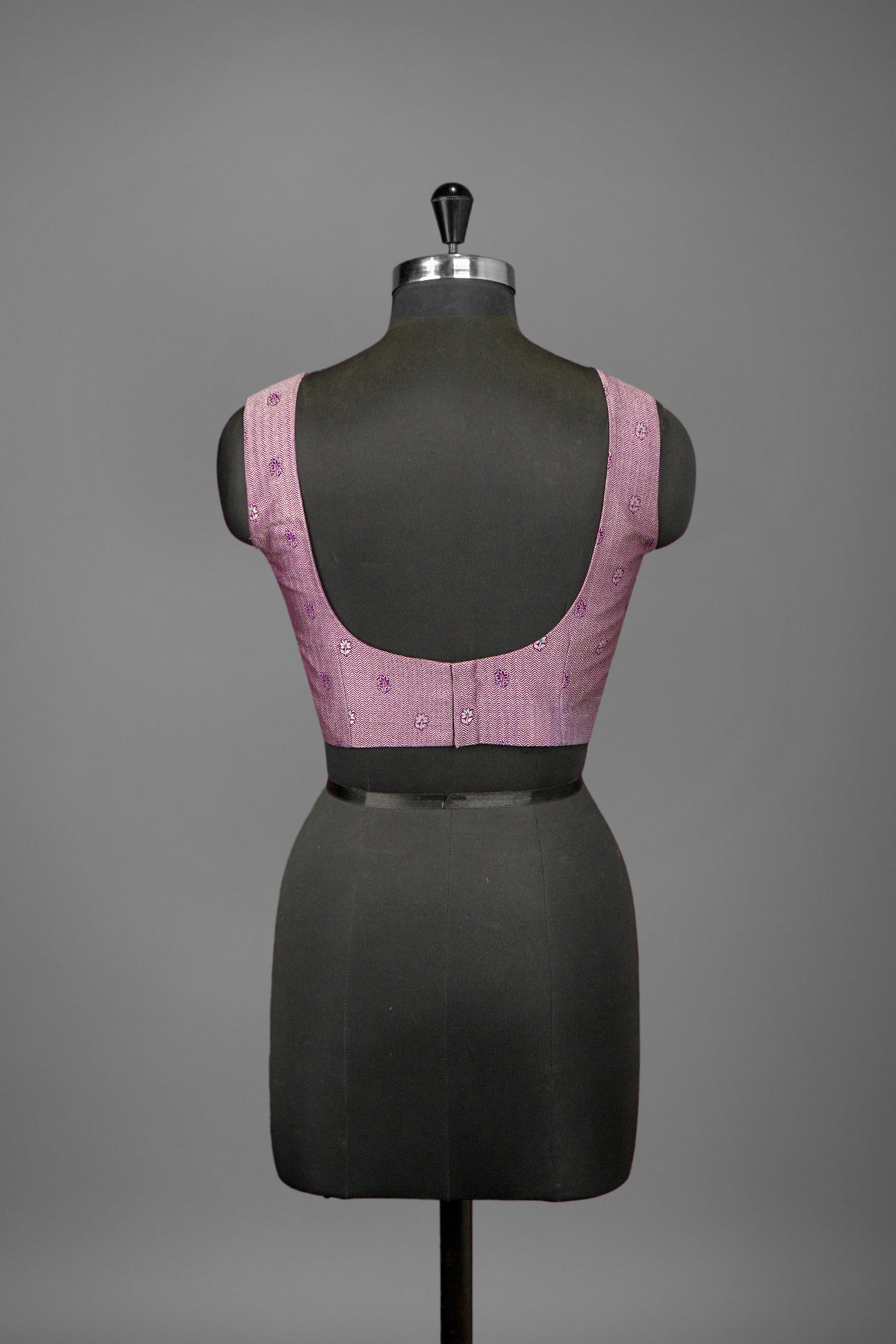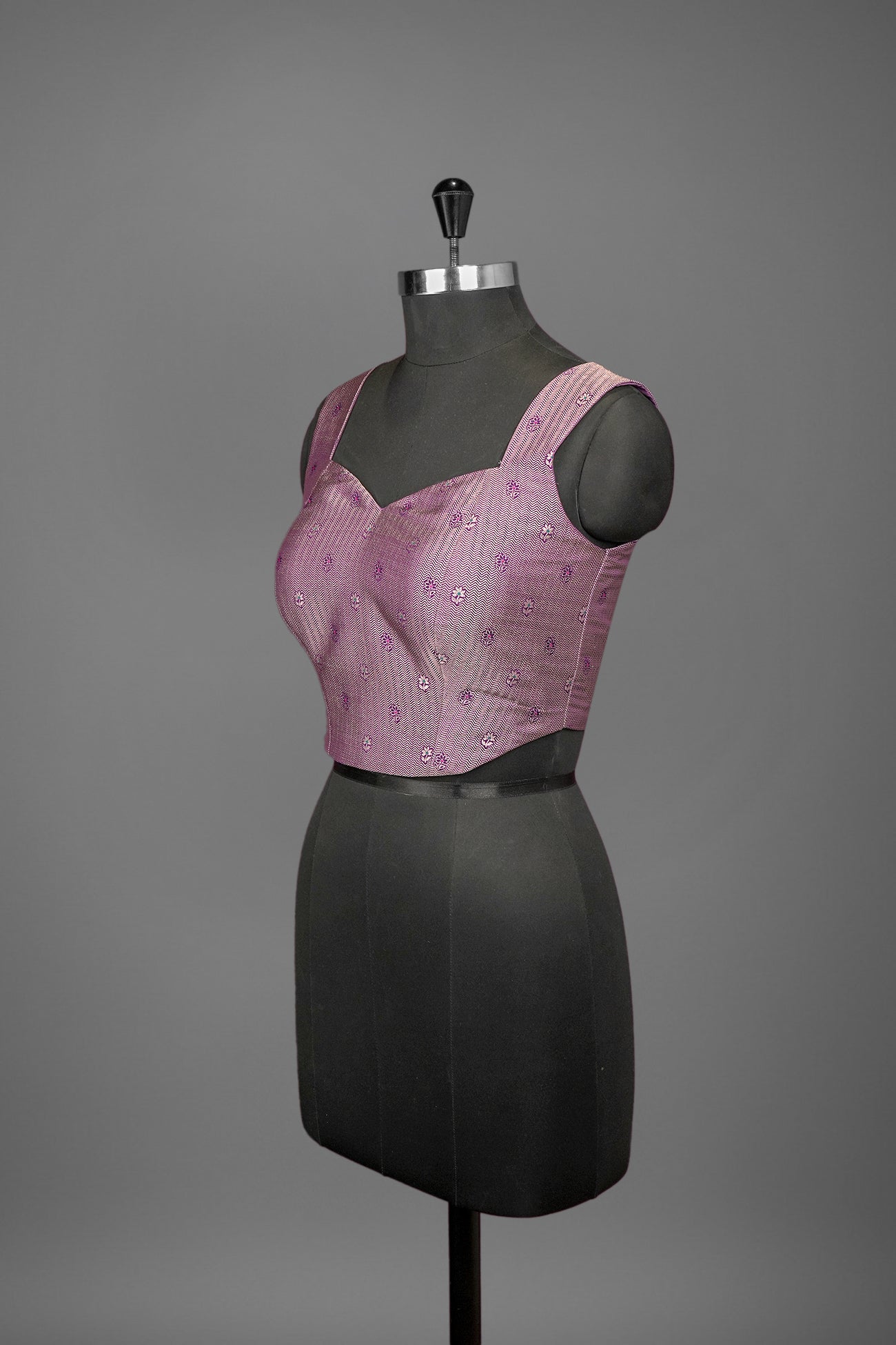Festive wear pretty lavender purple single color blended silk brocade body designed blouse ready to wear with half fine zari gold