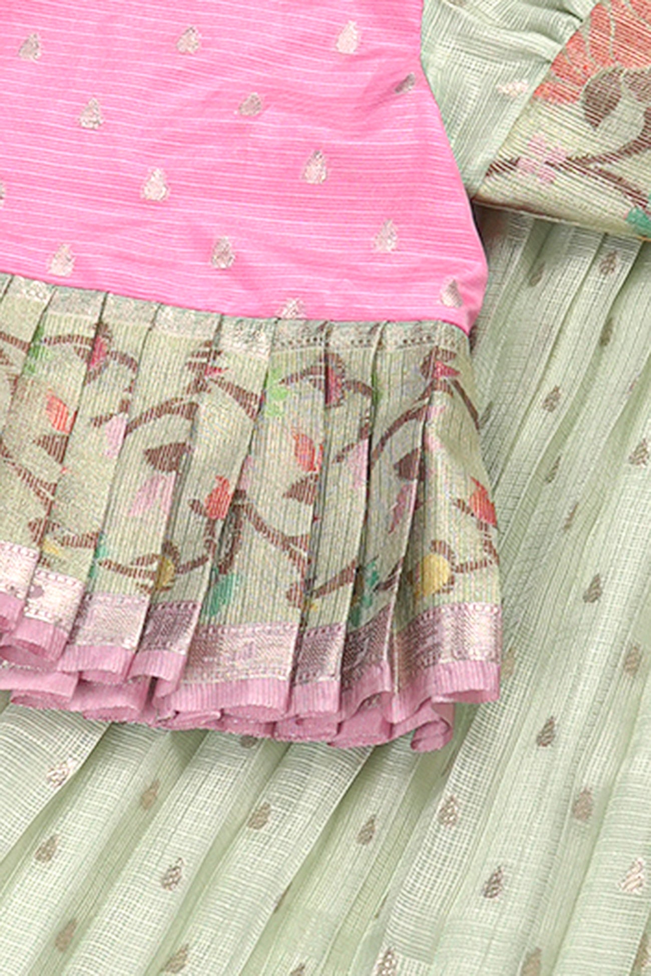 silk kota tissue fuschia pink cool mint sea green Lehanga blouse with out dupatta