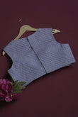Festive wear pretty lilac blue single color blended linen body designed machine embroidery pintuck blouse ready to wear