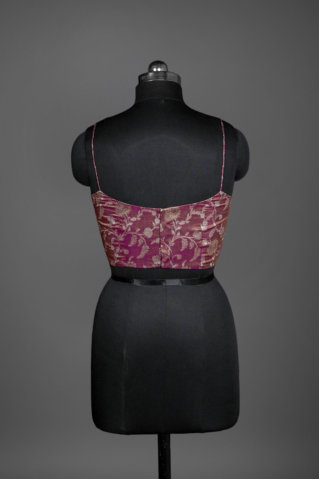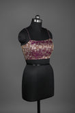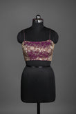 Festive wear pretty purple violet short colour blended tissue woven body designed blouse ready to wear with half fine zari gold