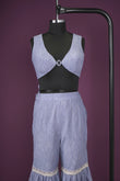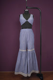 satin light beige light navy blue Indo-westerns