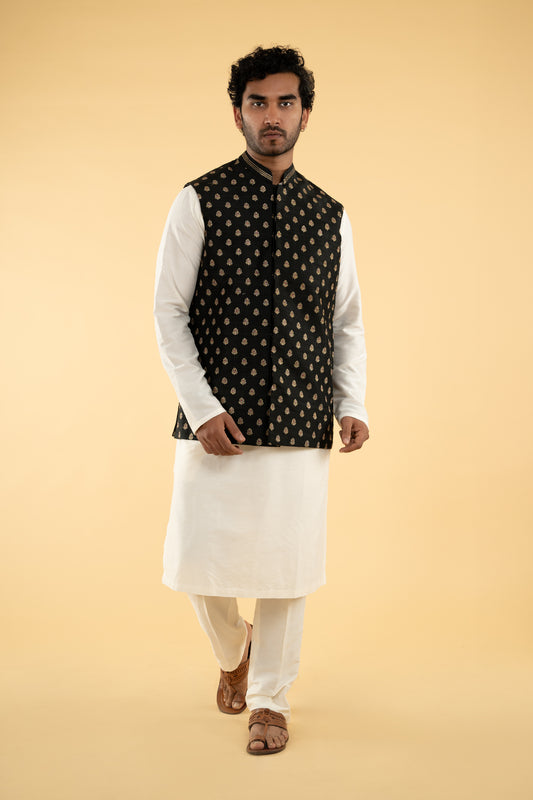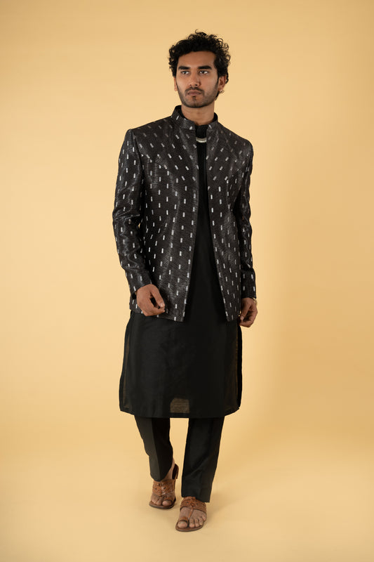 Party wear pretty black single color pure dupion natural body designed machine embroidery Bandi with...