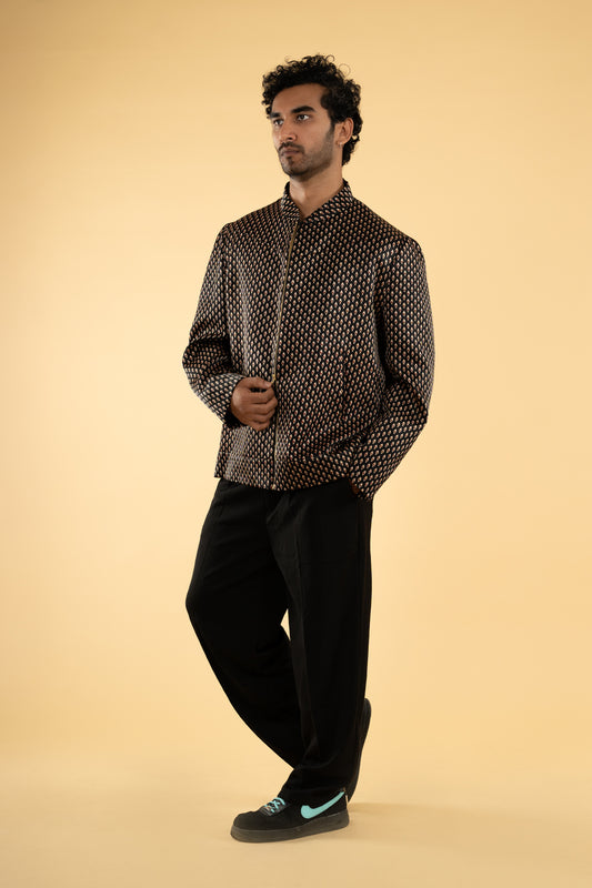Festive wear pretty black single color blended Mashroo soft body designed ajrakh print Bandi