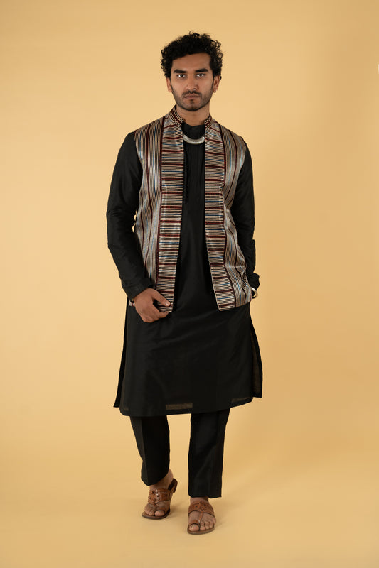 Festive wear pretty black multi color blended tussar woven body designed Bandi with half fine...
