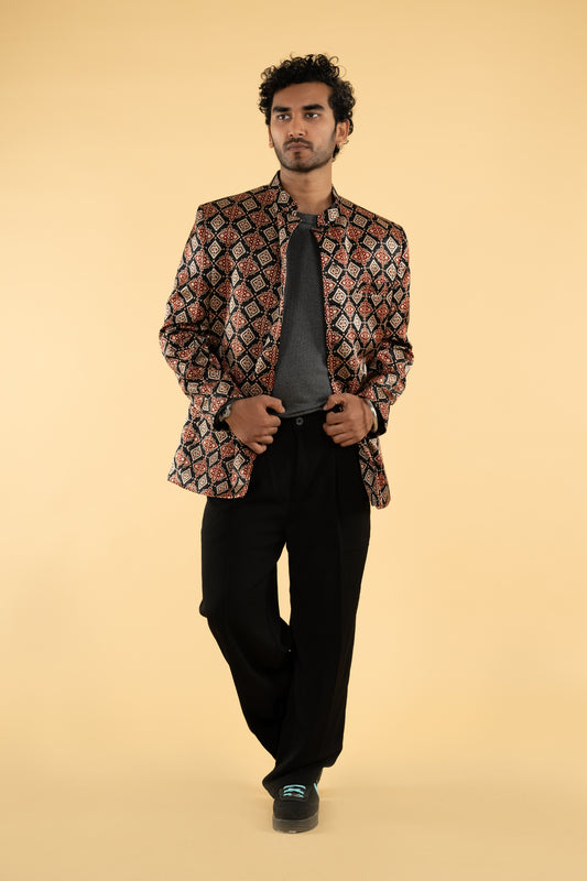 Festive wear pretty black multi color blended Mashroo soft body designed ajrakh print Bandi