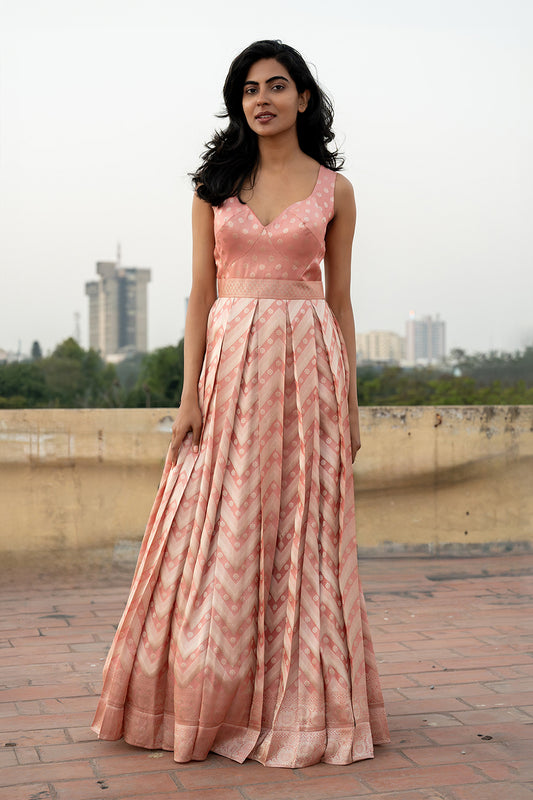 Festive Party wear pretty light beige magenta pink contrast blended organza tissue woven body designed...