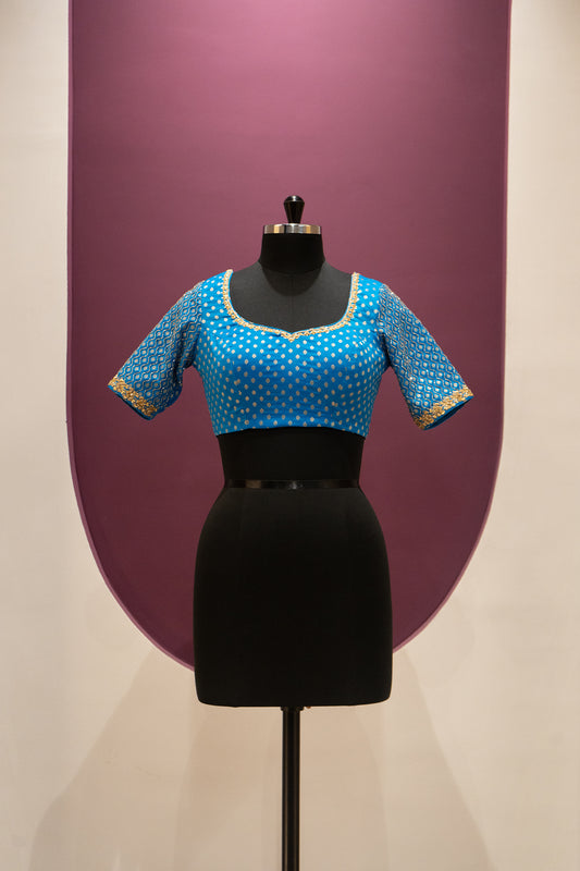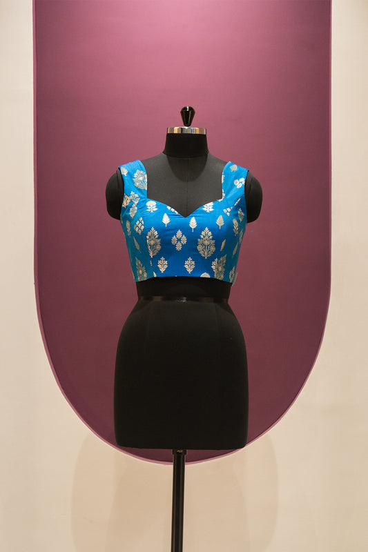 Festive wear traditional bright pottery blue single color pure silk woven body designed blouse ready...