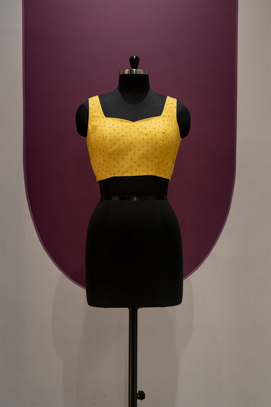 Festive wear traditional blush lemon yellow single color blended satin brocade body designed blouse ready...