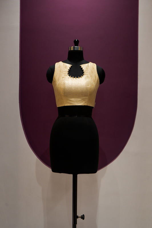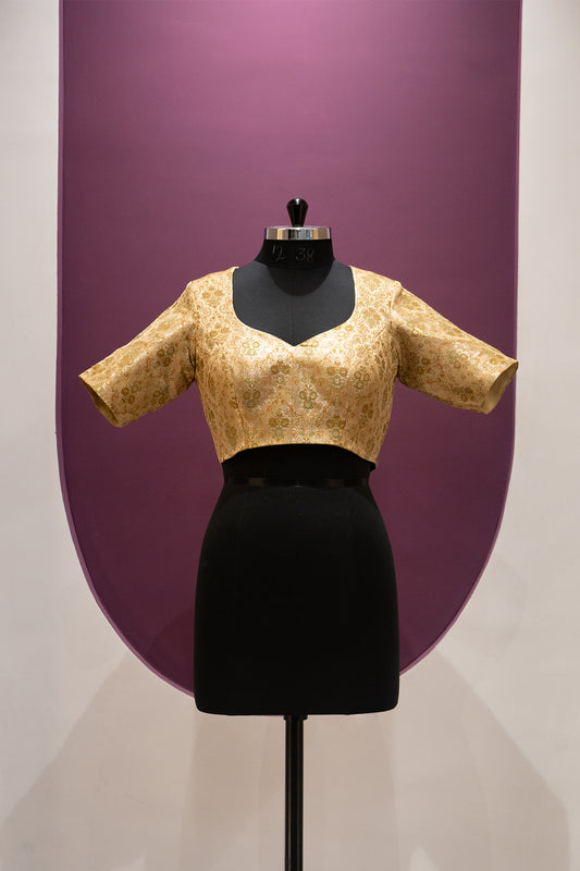 Festive wear traditional natural beige tussar single color blended satin brocade body designed blouse ready...