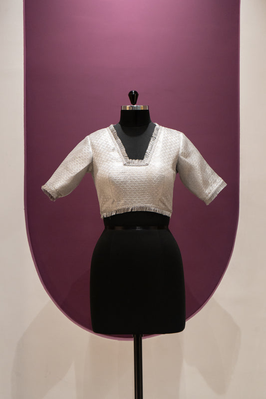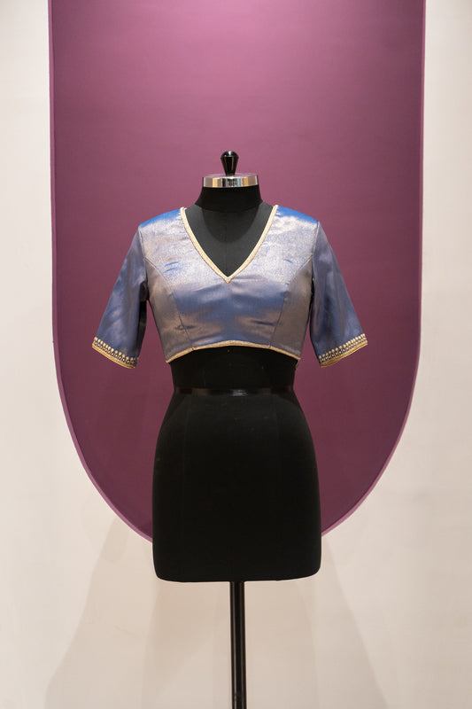 Festive wear pretty light grey single color blended tissue shiny body designed blouse ready to...