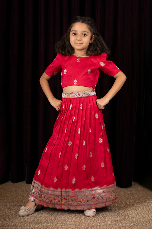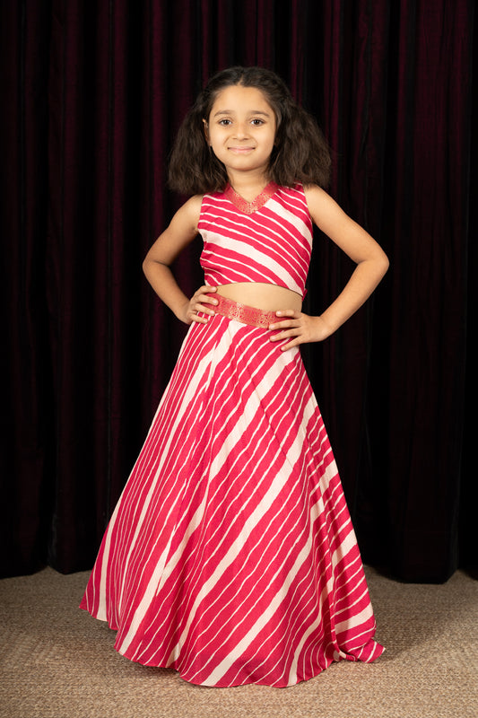 Festive wear pretty fuschia pink white contrast blended dupion body designed printed Girls Lehanga Choli...