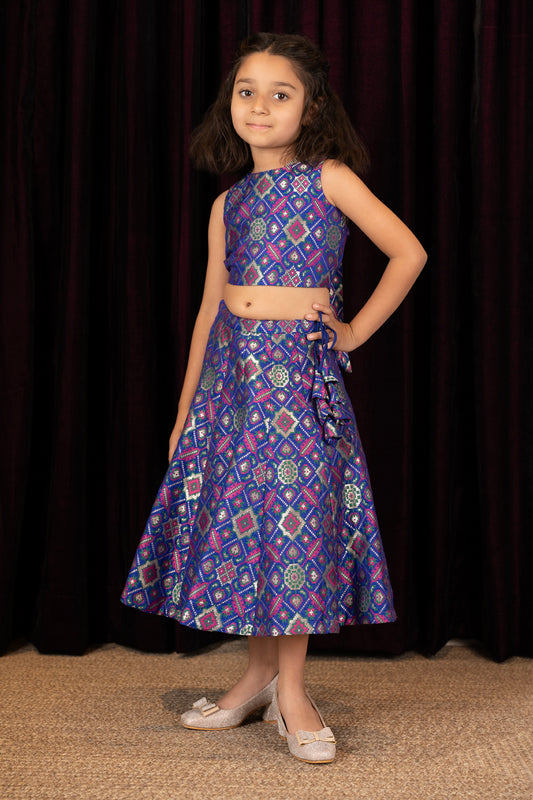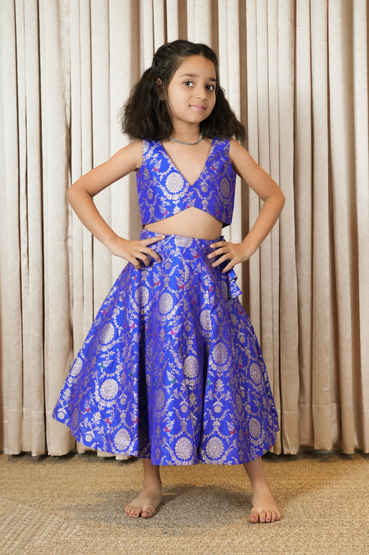 Festive wear pretty dark marine blue single color blended dupion woven body designed Girls Lehanga...