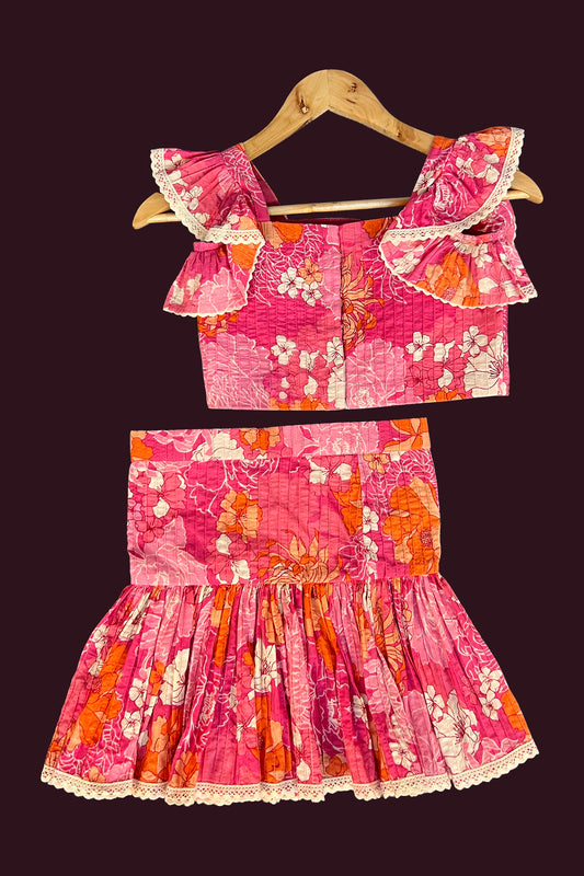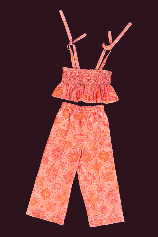 Festive wear pretty salmon pink single color pure cotton soft body designed printed Girls Co...