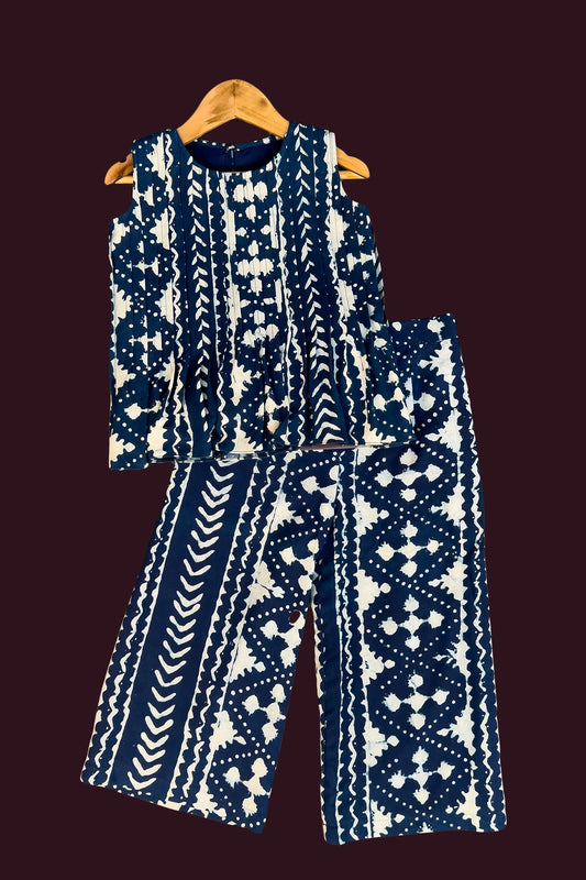 Festive wear pretty light navy blue single color pure cotton soft body designed printed Girls...
