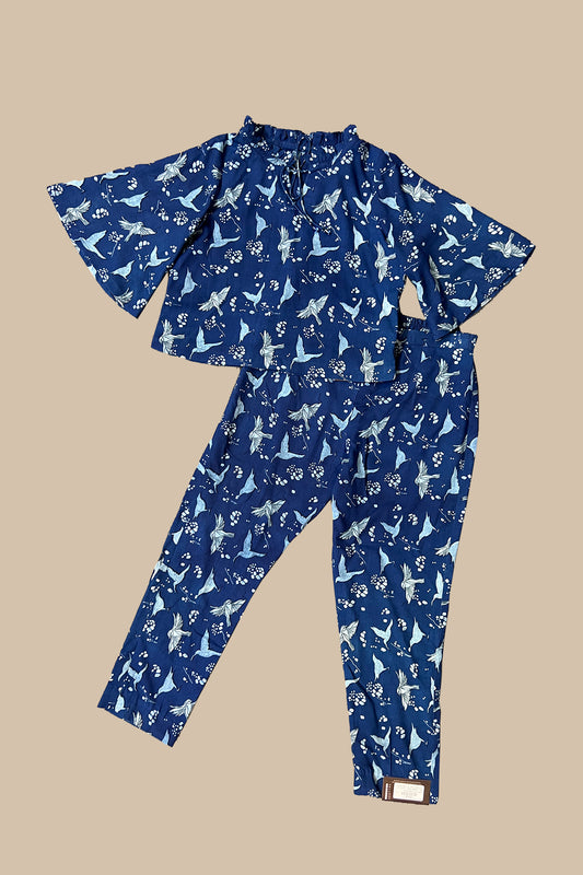 Festive wear pretty light navy blue single color pure cotton soft body designed birds printed...