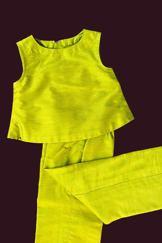 Festive wear pretty fig green single color pure dupion natural plain body Girls Ready To...