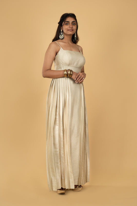 Festive Party wear pretty natural beige tussar single color blended dupion tissue brocade plain body...