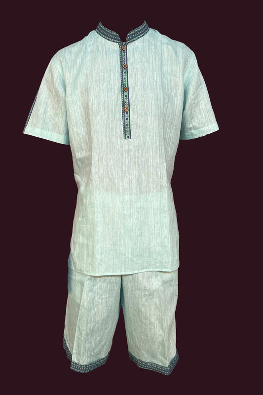 Festive Party wear pretty raw apple green single color blended linen body designed hand embroidery...