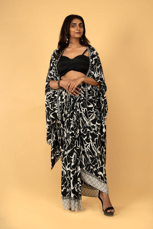 Festive Party wear pretty black single color blended crepe soft body designed printed Jump suit