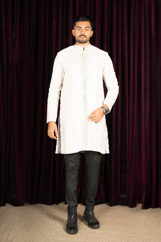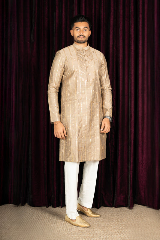 Festive wear pretty light beige single color pure cotton soft body designed machine embroidery thread...