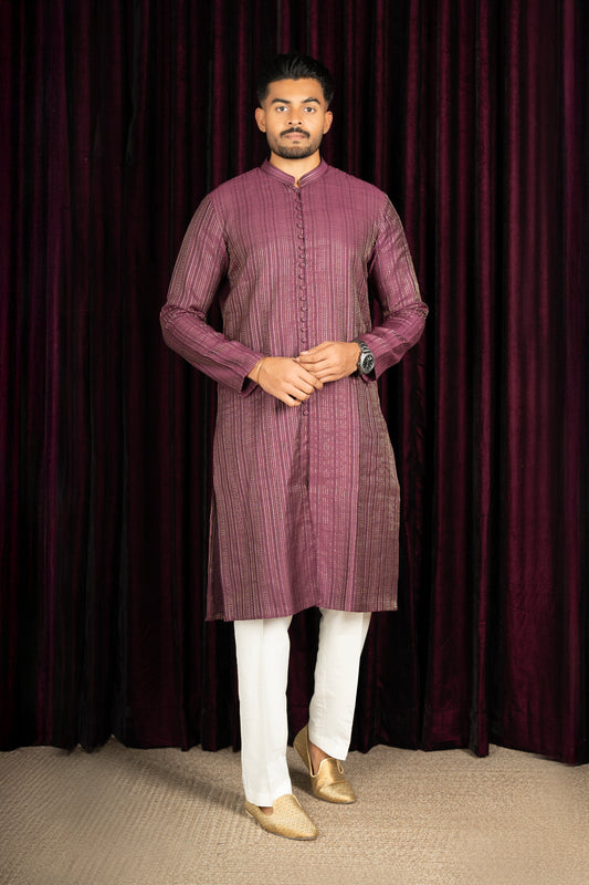 Festive wear pretty dark burgundy mauve single color blended tussar woven body designed hand embroidery...