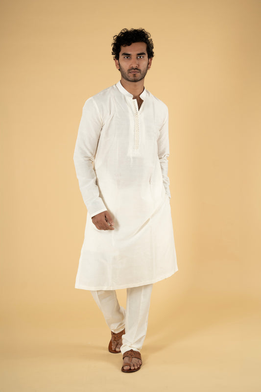 Festive wear pretty white single color pure cotton soft plain body Kurta set