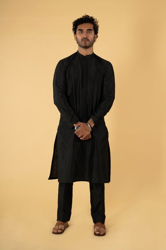 Festive wear pretty black single color pure cotton soft plain body Kurta set