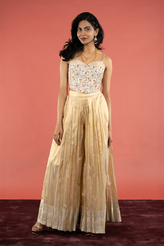 Festive Party wear pretty beautiful light beige natural beige tussar contrast blended dupion tissue shiny...