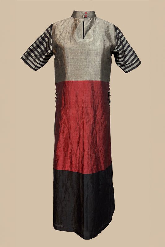 Festive Party wear pretty black light grey dark onion pink multi color blended tissue shiny...