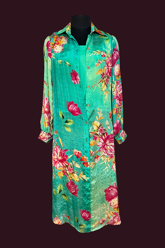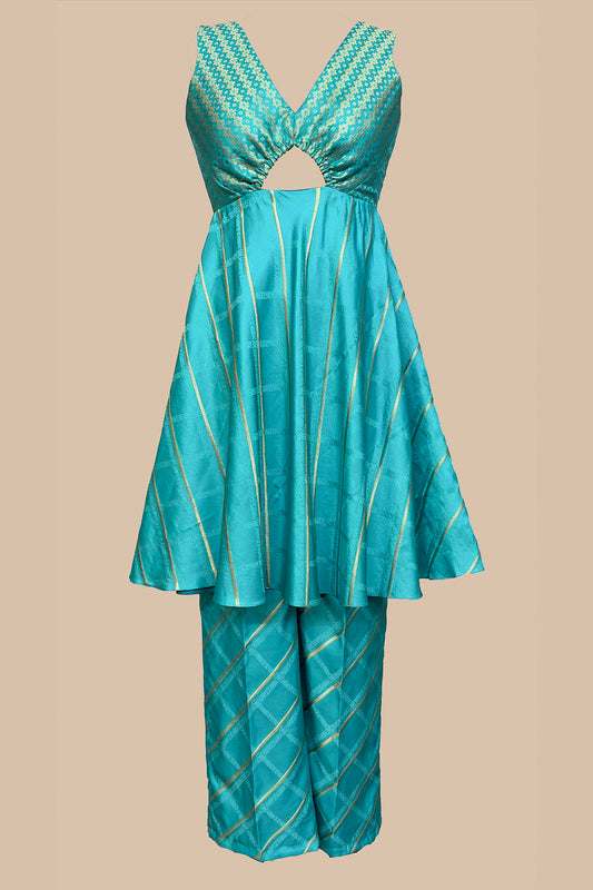 Festive Party wear pretty jungle sea green single color blended dupion woven body designed Indo-westerns...